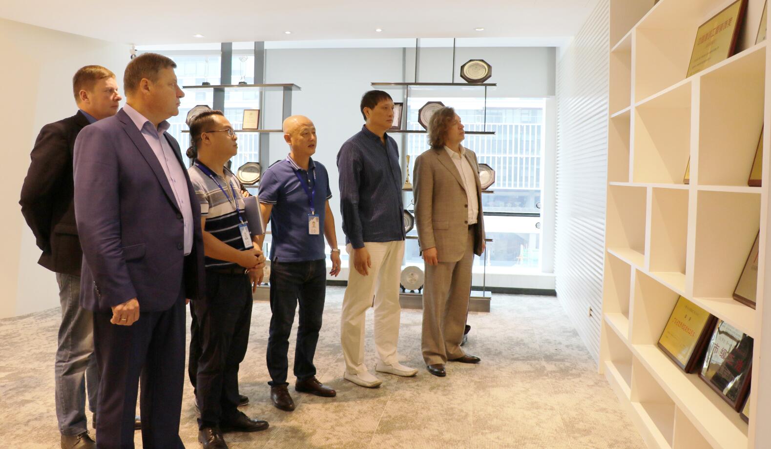 8月25日,俄羅斯首都發展建筑有限公司(ООО СК "Столица- Девелопмент")總裁安德烈耶夫先生(Andreev)一行蒞臨博大建設集團深圳總部參觀考察。董事長徐凱宏親自接見,集團董事、常務副總裁沈雁飛,行政副總裁劉子蓮及中建三局王總等相關領導陪同考察。