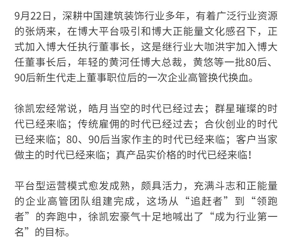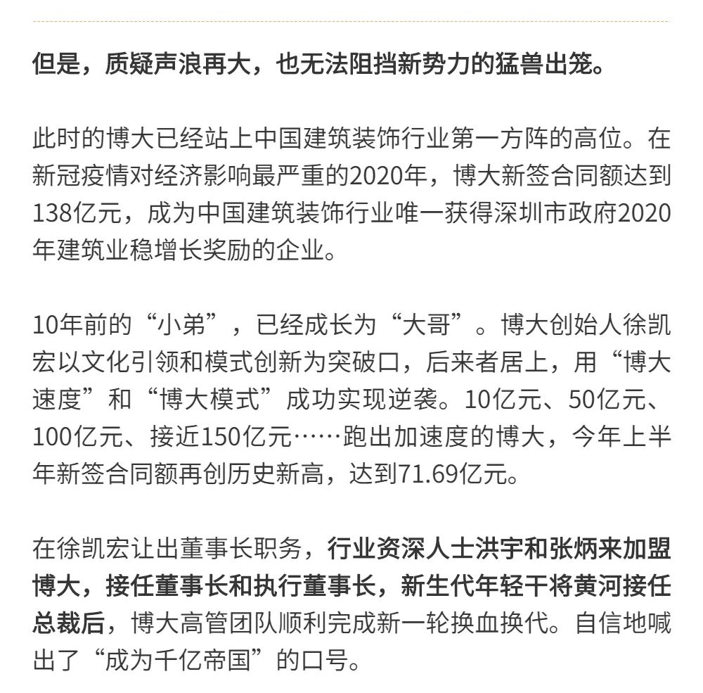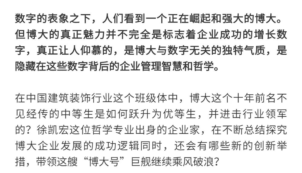 恰逢博大建設(shè)集團(tuán)再次躍升至中國建筑裝飾行業(yè)百強(qiáng)第3名的喜訊,現(xiàn)把兩篇深度好文再次轉(zhuǎn)發(fā),以饗讀者。