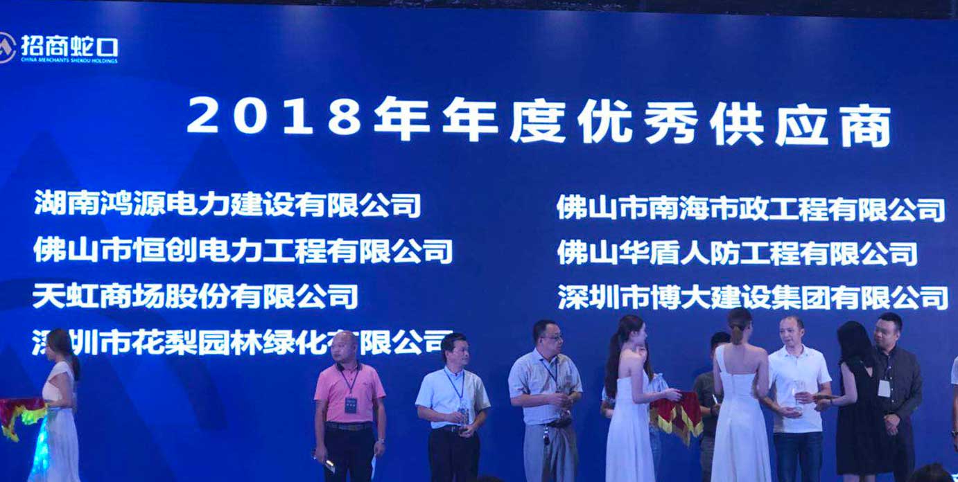 2018年9月,招商蛇口佛山公司舉行2018年度供應(yīng)商大會(huì),深圳市博大建設(shè)集團(tuán)有限公司憑借過(guò)硬的工程質(zhì)量、嚴(yán)格的工期保障、讓顧客有幸福感的服務(wù)態(tài)度,榮獲招商蛇口佛山公司“2018年度優(yōu)秀新供應(yīng)商獎(jiǎng)”。