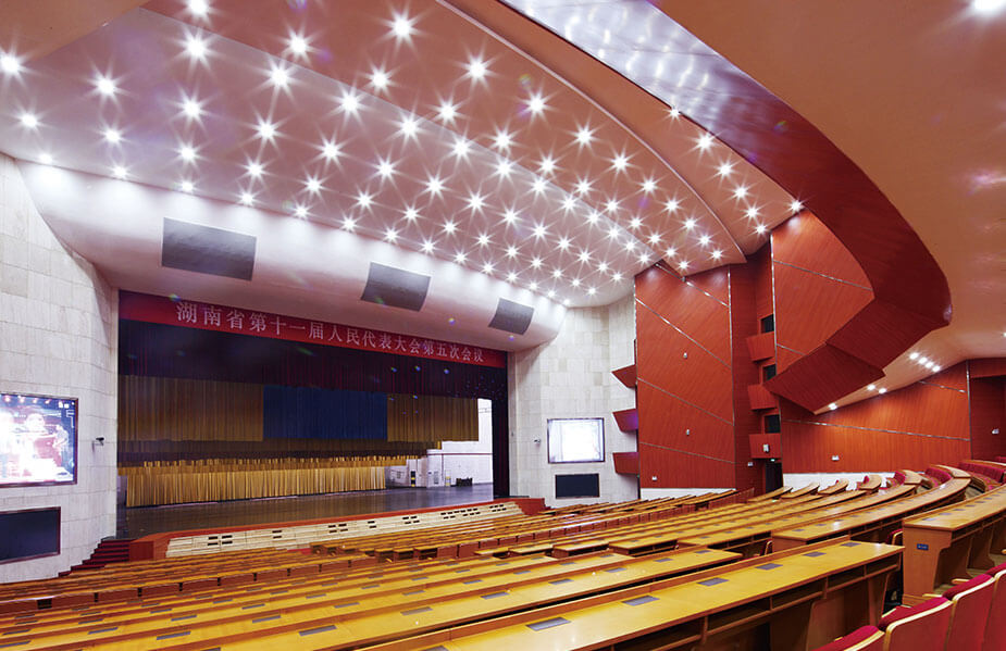 湖南省人民會堂是湖南省召開兩會和重要會議及演出的會堂,位于長沙市天心區(qū)湖南省人民政府新機關(guān)大院內(nèi)西北面,總用地面積66333㎡,總建筑面積27000㎡,觀眾廳設(shè)座位1840席,主臺設(shè)座位200席。